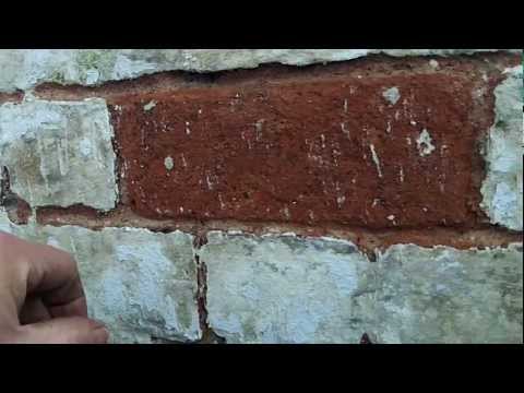 Both had been covered in what looks like an acrylic impermeable paint before the cavity wall insulation was put in. This can be shown because some of the difficult to access CWI plugs are unpainted.